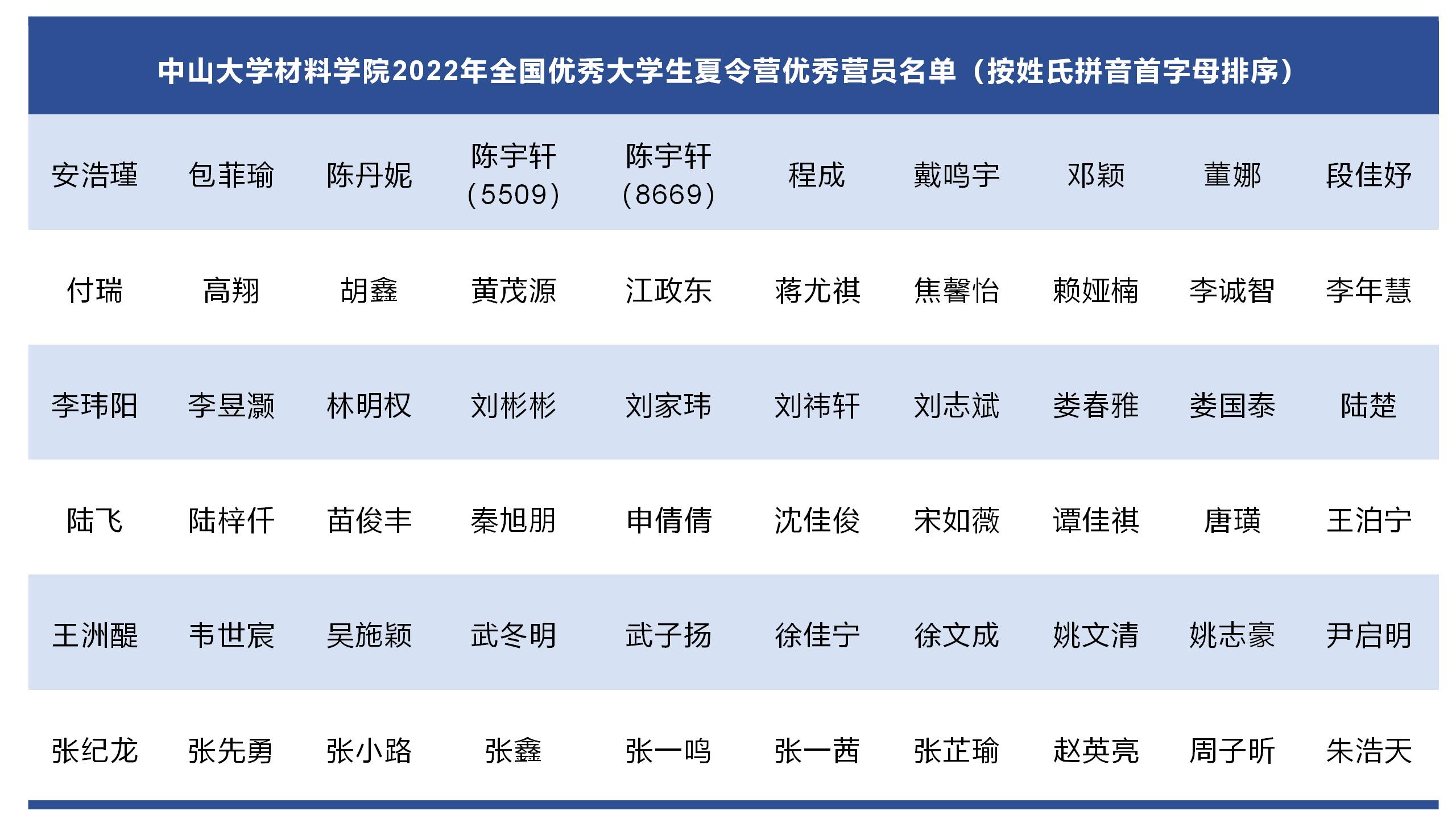 經過綜合考核環節,本次夏令營共有60位營員被評選為優秀營員,名單如下: